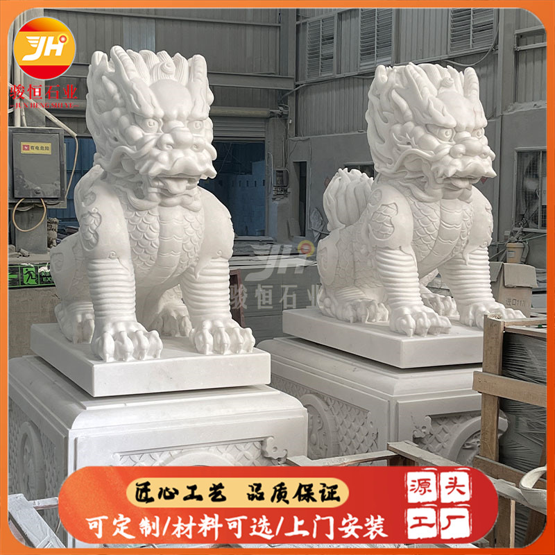 此件作品支持定制,无论您偏好哪种尺寸或风格,都可根据您的需求量身打造,使其更加贴合您的家庭或酒店的装饰风格。让这件汉白玉石雕麒麟成为您家门口亮眼的标志,也是传递中华传统文化之美的桥梁。