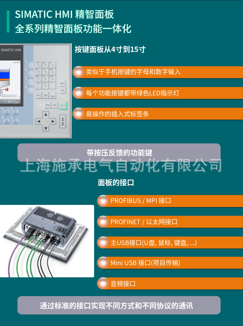 6AV2124-0 SIMATIC HMI TP1500 精智, 精智面板, 触摸操作,15" 宽屏 TFT(彩色)显示屏,16 MIO 色,PROFINET 接口, MPI/PROFIBUS-DP 接口,24MB 组态存储器,WEC 2013,可项目组态,从 WinCC Comfort V14 SP1 带 HSP, 环境温度Zui高 45°C